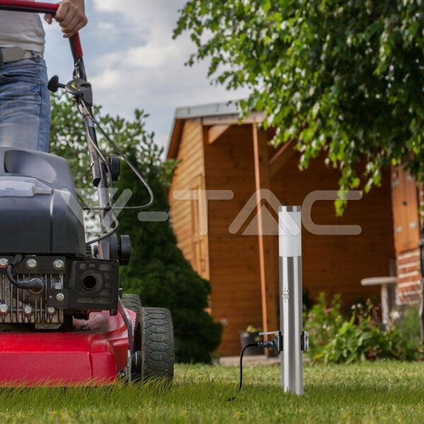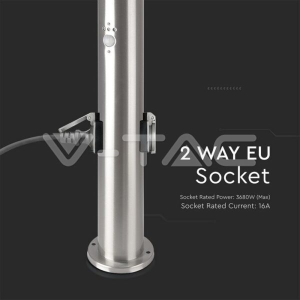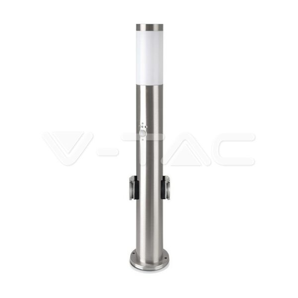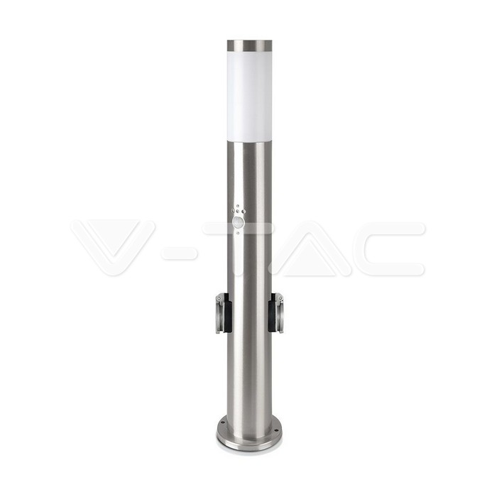 E27 Bollard Lamp 60cm PIR Sensor 2 EU Plug Sockets Stainless Steel Satin Nickel IP44