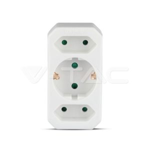 2 Ways Adapter 2 Euro Socket 10A , 1 Socket 10/16A 250V White